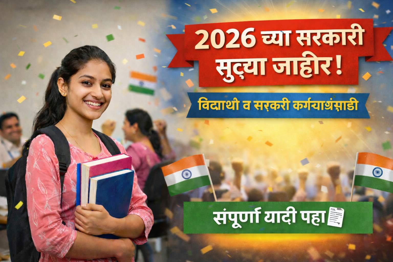 Government Holidays List: 2026 च्या सरकारी सुट्ट्या जाहीर! कर्मचाऱ्यांना मिळणार 50 सुट्ट्या – पहा संपूर्ण यादी